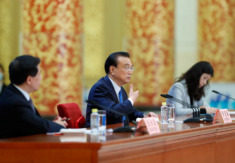 3月11日下午,十三届全国人大四次会议在北京人民大会堂举行记者会,国务院总理李克强应大会发言人张业遂的邀请出席记者会,并回答中外记者提问。新华社记者 陈晔华 摄