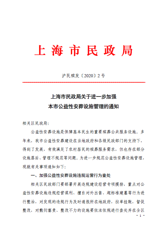 关于进一步加强本市公益性安葬设施管理的通知 ( 2020-10-13 )