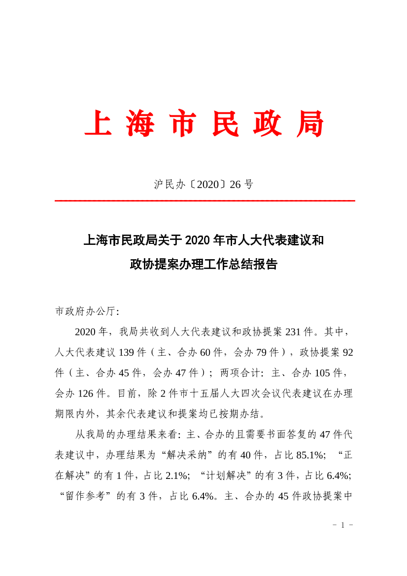 | 文件编号: | 沪民办〔2020〕26 号 | 公开类别: | 主动公开 |
