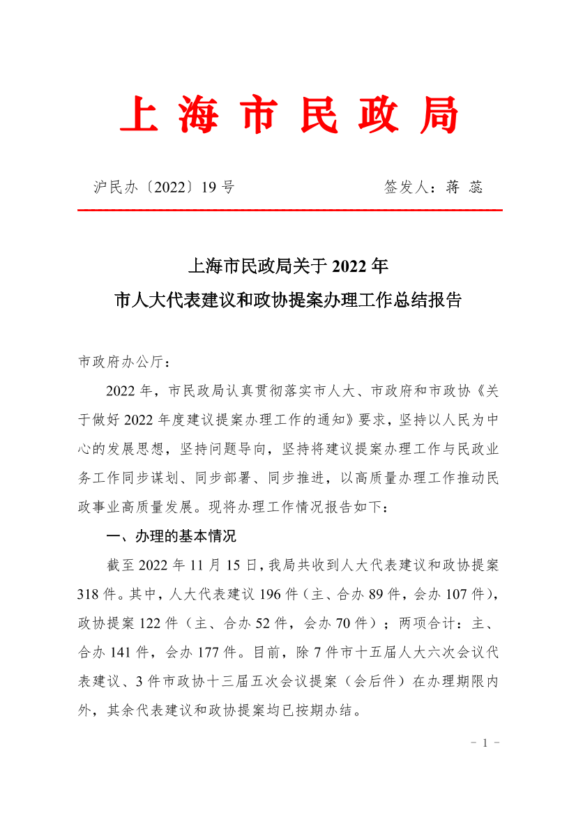 上海市民政局关于2022年市人大代表建议和政协提案办理工作总结报告 ( 2022-11-25 )