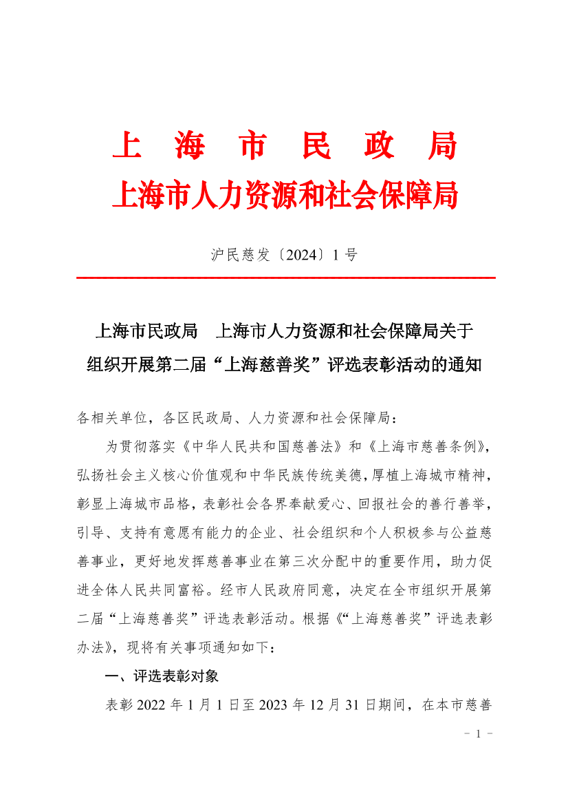 | 文件编号: | 沪民慈发〔2024〕1 号 | 公开类别: | 主动公开 |