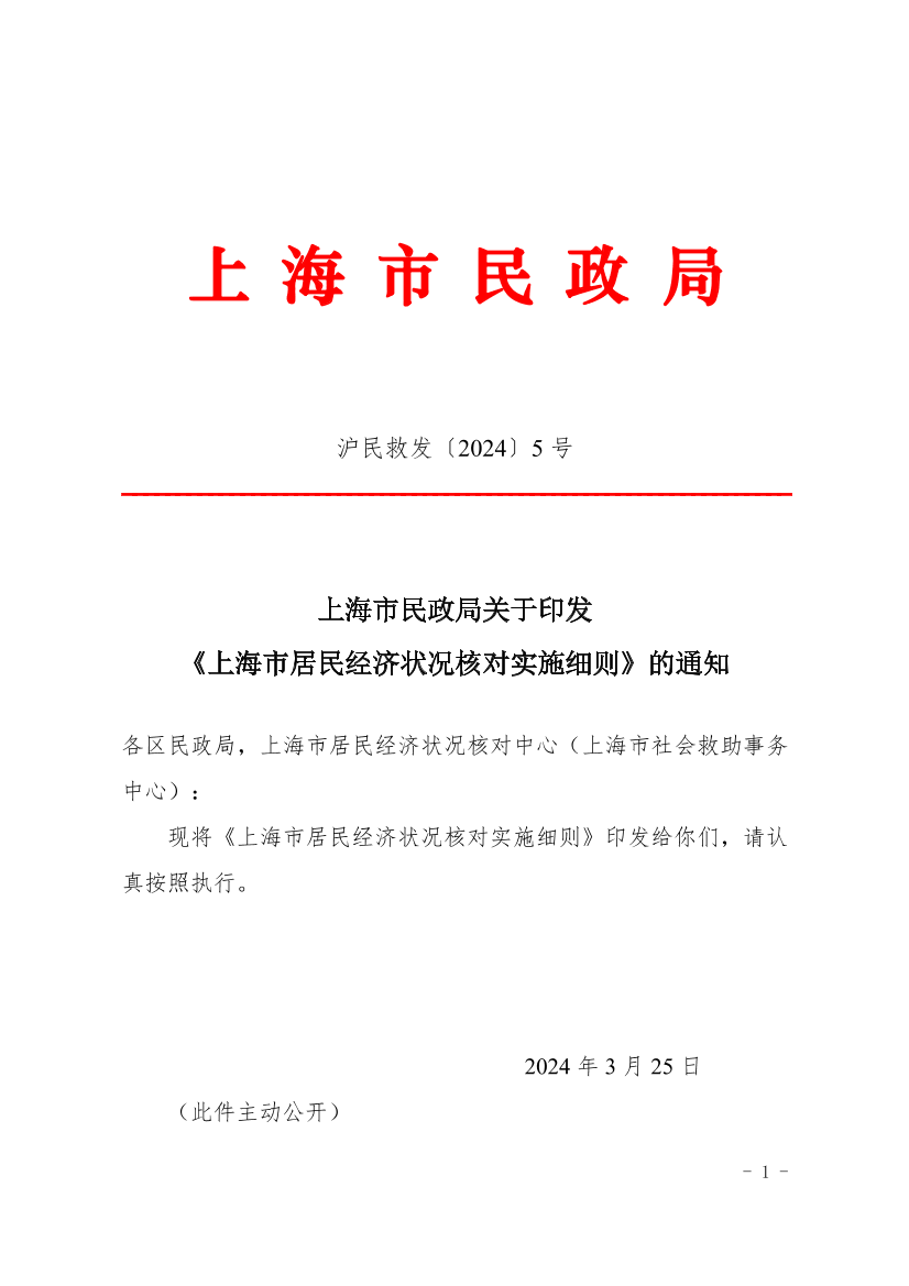 上海市民政局关于印发《上海市居民经济状况核对实施细则》的通知 ( 2024-04-01 )