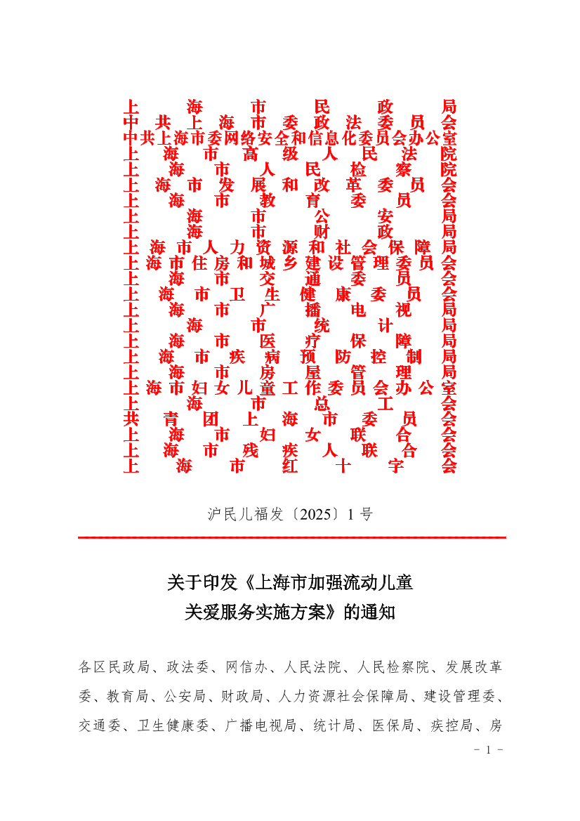 | 文件编号: | 沪民儿福发〔2025〕1 号 | 公开类别: | 主动公开 |