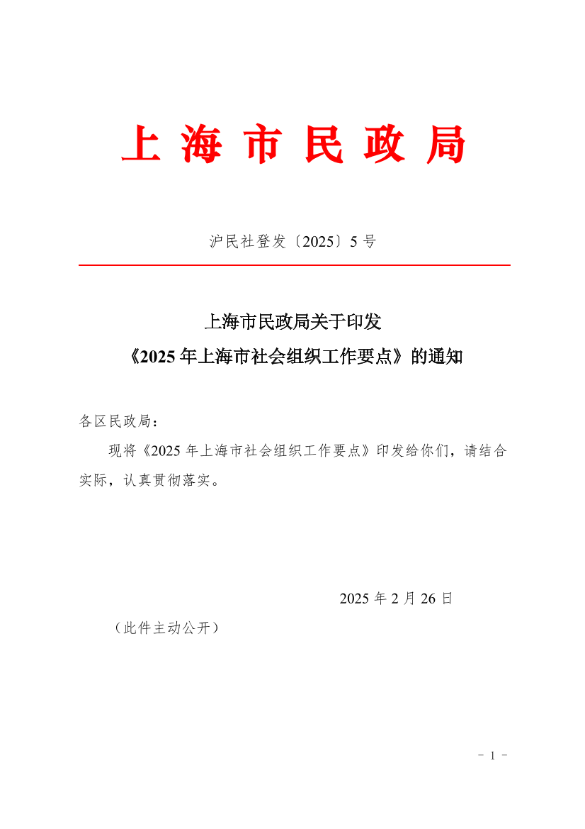 | 文件编号: | 沪民社登发〔2025〕5 号 | 公开类别: | 主动公开 |